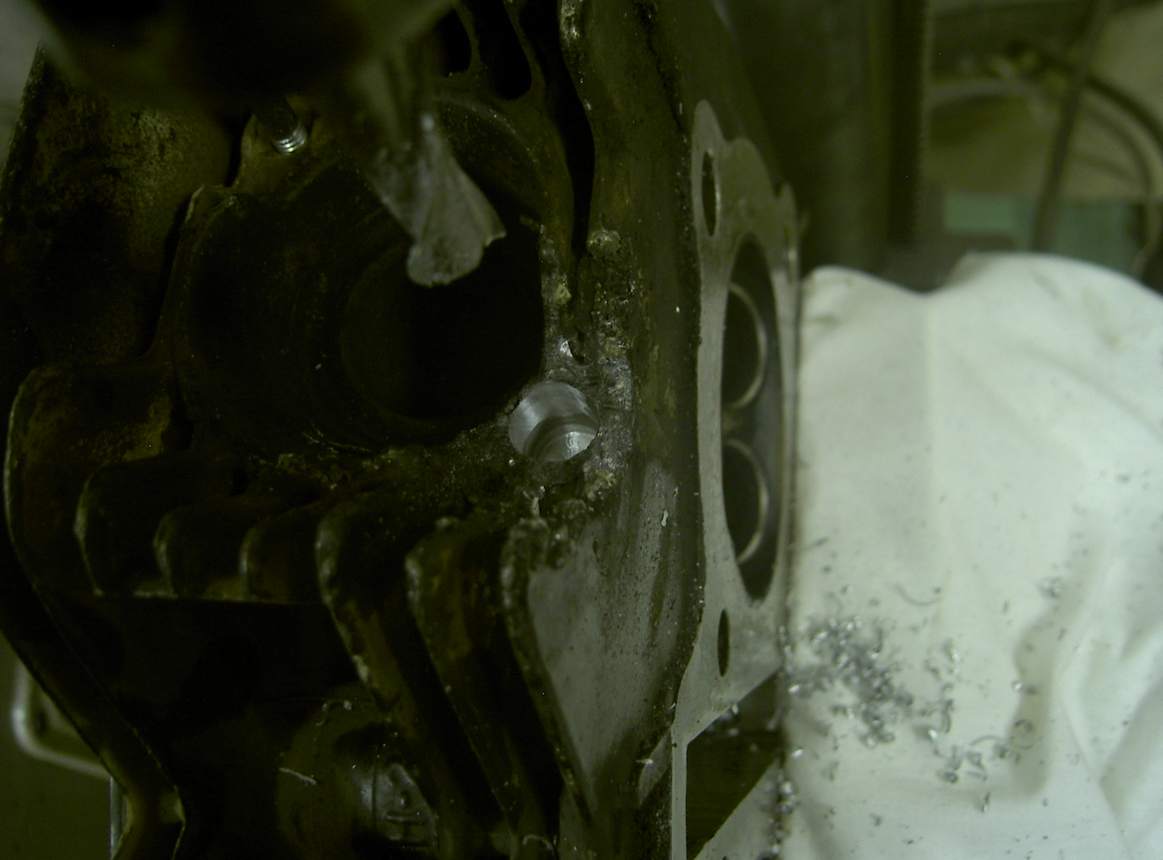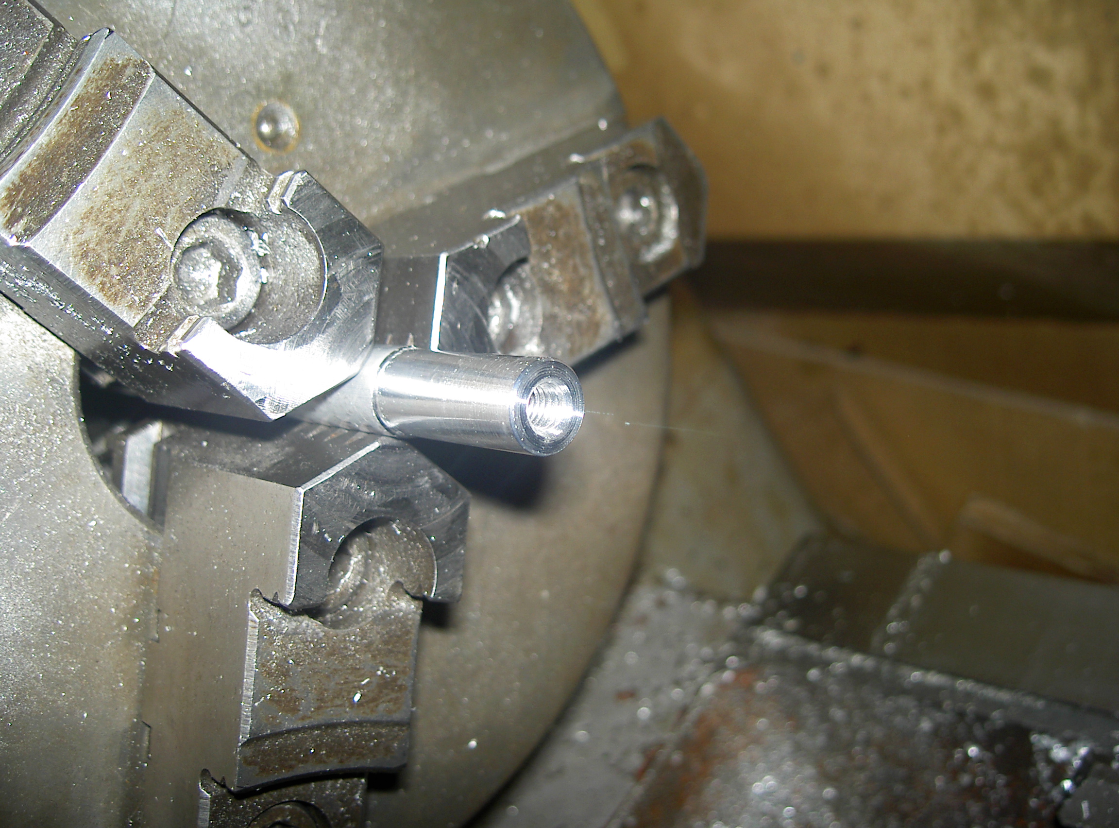 元のねじ山に対してセンターに穴を開け直します。